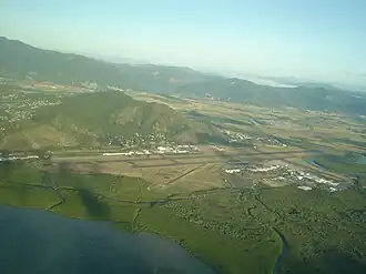 Aeroglen and Cairns Airport with Mount Whitfield directly behind it, as seen from the Coral Sea | |||||||||||||||