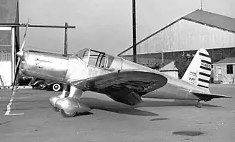 In the absence of civil orders, Phillips slightly increased the span as well its power, in the hope that USAAC would order it as a basic trainer.[3] A 160 hp (120 kW) Menasco B-6 six-cylinder inline installation was planned,[1] though another six-cylinder, inverted inline, a 145 hp (108 kW) Ranger 6-410, was finally installed.[3]