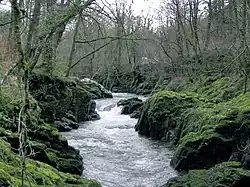 The river is closely followed by the A4069 road for several kilometres southeast road from Llangadog, not least where the river enters the wooded gorge section between Rhyd-y-saint and Pont Newydd. Almost continuous exposures of a Devonian and Silurian rock sequence occur in the bed and sides of the river in this part of its course and have resulted in its designation as a geological site of special scientific interest.