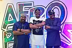Obi Asika, Ayo Shonaiya and DJ Jimmy Jatt at the 2021 Premiere of Afrobeats The Backstory in Lagos, Nigeria.