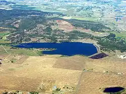 Agate Lake is a reservoir located 1,510 feet (460 m) above sea level in Jackson County, Oregon, United States. It is 13 miles (21 km) northeast of Medford,[3] just north of Roxy Ann Peak. The lake is formed by the 86-foot (26 m) tall Agate Dam, which impounds Dry Creek, in the Rogue River watershed.