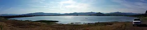 Construction of Agate Dam was authorized in 1962, started in 1965, and completed in 1966.[3][4] The 86-foot (26 m) tall earth-fill embankment dam was completed by the Talent Division of the Rogue River Basin Project, impounding Dry Creek. Two canals were also built, one a feeder canal diverting seasonal runoff water from Hopkins canal fed from nearby Antelope Creek. The second is the Dry Creek Diversion Canal through which the reservoir water is released at a controlled rate beginning in the summer months supplementing the water supplies of Dry Creek, Antelope Creek, and eventually Little Butte Creek. This water is mainly used for irrigation and the demand for it downstream is normally enough to reduce the reservoir to its minimum allowable level by September each year.[2] A boat ramp, four pit toilets, a picnic area, and a parking lot were also built. All but the boat ramp and parking lot have been removed due to excessive vandalism. There are three parking areas one on the north west side and two on the east side of the lake .[4]