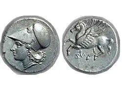 Agathocles (Ancient Greek: Ἀγαθοκλῆς, Agathoklḗs; 361–289 BC) was a tyrant of Syracuse from 317 BC and king of much of Sicily from 304 BC until his death. Agathocles began his career as a military officer, and raised his profile as a supporter of the democratic faction in Syracuse against the oligarchic civic government. His opponents forced him into exile and he became a mercenary leader. He eventually made his way back to Syracuse and was elected as a general. A few years later he took control through a coup d'état. In practice he was a tyrant, although a democratic constitution theoretically remained in force.