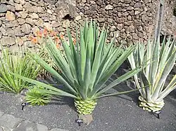 The leaves of Agave fourcroydes yield a fiber also called henequen, which is suitable for rope and twine but not of as high a quality as sisal.[3] It is the major plantation fiber agave of eastern Mexico, being grown extensively in Yucatán, Veracruz, and Tamaulipas. It is also used to make licor del henequén, a traditional Mexican alcoholic drink.