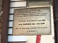 Agim Hajrizi was assassinated[1] by Serb paramilitary soldiers in his home in Mitrovica on 24 March 1999, during the Kosovo War, with his mother Nazmie and 12-year-old son Ilir. It is thought he was targeted for his political activities,[2] similar to other prominent Kosovo Albanians killed by Serbian forces at the same time.[3]