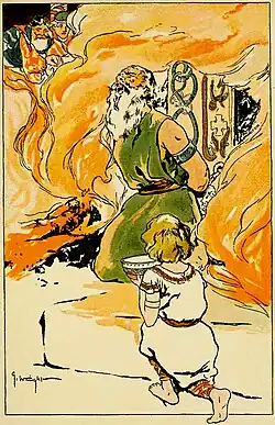 Agnarr (Old Norse: [ˈɑɣnɑrː]) is the son of King Gerriod, son of Hraudung in Norse mythology. He was named after his uncle Agnarr, who was betrayed by Gerriod and sent to die on the high seas. Agnarr is solely attested in the poem Grímnismál in the Poetic Edda, the latter compiled in the 13th century from earlier traditional sources. In Grímnismál he is described as aiding Odin, disguised as Grímnir, to escape from Geirröðr's torture. After Odin reveals his true identity, King Gerriod dies by falling on his own sword, leaving Agnarr as his heir.[1][2]
