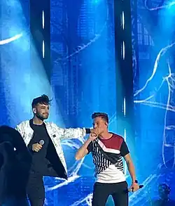 In 2017, Agoney appeared at the casting of Operación Triunfo 2017, a reality talent show that is the original Spanish version of the Star Academy franchise. Agoney was chosen as one of the 16 participants of the talent show. He was eliminated in gala 12 after a very close vote against fellow contestant Ana Guerra who won with 50.3% of the two million votes.[3] Once finished in the contest, Agoney was part of the Spanish Operación Triunfo tour, performing in such notable venues as the Palau Sant Jordi in Barcelona,[4] the Olympic Stadium in La Cartuja in Seville,[5] the Bizkaia Arena in Bilbao, and the Santiago Bernabéu Stadium in Madrid.[6]