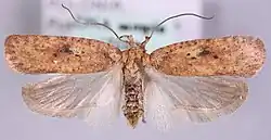 The wingspan is 20–25 mm. Adults are on wing from July to March.[2]