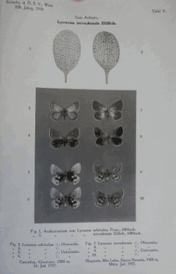 Agriades zullichi (Zullich's blue) is a species of butterfly in the family Lycaenidae. It is endemic to Spain.[1] It is a montane species (2,500–3,000 metres (8,200–9,800 ft)) confined to the Sierra Nevada. It is very similar to Agriades glandon and formerly was a subspecies of that taxon. The ground colour is more greyish. The larval foodplant is Androsace vitaliana.