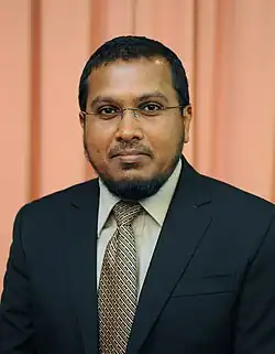Ahmed Inaz is a Maldivian economist, and former Minister of Finance in the MDP government from April 2011 to December 2011.[1][2] He was a member of the Maldivian Democratic Party, but resigned in February 2012 and has served as a Director in Planning Ministry during the presidency of former President Maumoon Abdul Gayoom. He resigned from the post of Finance Minister after MDP militant activists assaulted him after meeting an opposition leader.[3][4]
