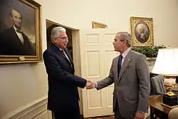 Ahmed Nazif (Arabic: أحمد نظيف, romanized: Aḥmad Naẓīf, Egyptian Arabic pronunciation: [ˈæħmæd nɑˈzˤiːf]; born 8 July 1952) is an Egyptian politician who served as the prime minister of Egypt from 14 July 2004 to 29 January 2011, when his cabinet was dismissed by President Hosni Mubarak in light of a popular uprising that led to the 2011 Egyptian revolution. Nazif was acting president of Egypt from 5 March to 15 April 2010, when President Mubarak delegated his authorities to Nazif while undergoing surgery in Germany.[2]