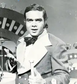 Ahmed Rushdi (Urdu: احمد رشدی; 24 April 1934 – 11 April 1983) was a versatile[2] Pakistani playback singer and was "an important contributor to the golden age of Pakistani film music".[3] Regarded as one of the greatest singers in South Asia[4][5] who could sing high tenor notes with ease,[6] he is best known for his versatility[7] and distinctive voice, with complex and dark emotional expressions.[8][9] Considered the first pop singer of South Asia, he sang South Asia's first pop song, "Ko Ko Korina", in the 1966 film Armaan.[10]