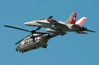 Air14, also named 100 years Swiss Air Force was an international air show held by the Swiss Air Force in late August and early September 2014 at Payerne Air Base, Switzerland. It claimed to be the biggest airshow in Europe of 2014.[1][2][3][4][5]