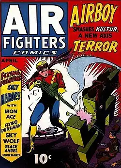 ![]() The cover to Air Fighters Comics vol. 1, #7, featuring Airboy. Art by Fred Kida. | |