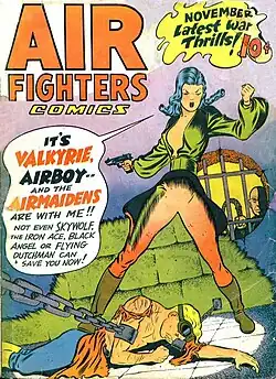 ![]() The cover to Air Fighters Comics vol. 2, #2, featuring Valkyrie. Art by Fred Kida. | |