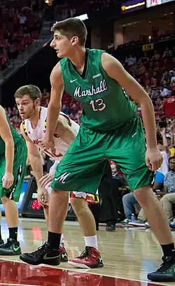 Penava was a reserve player during his first two seasons with the Herd. He had his breakout season as a junior when he became a full-time starter. One of his best games came against the Ohio Bobcats where he had 33 points, 15 rebounds, and 9 blocks in a 99–96 win.[1] He would later help lead Marshall to an upset win against Wichita State in the 2018 NCAA tournament scoring 16 points, grabbing 8 rebounds, and blocking 3 shots.[2] Penava led the nation in blocks during 2017–18 season and decided to declare for the 2018 NBA draft at season's end. He initially did not sign with an agent, but decided to do so on April 19. He did not return to Marshall for his senior season.[3]