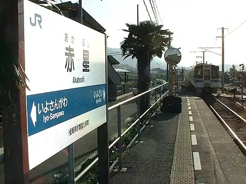 Akaboshi Station (赤星駅, Akaboshi-eki) is a passenger railway station located in the city of Shikokuchūō, Ehime Prefecture, Japan. It is operated by JR Shikoku and has the station number "Y25".[1][2]