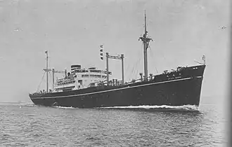 Akagi Maru was built in 1936 at Mitsubishi's shipyard in Nagasaki with the yard number 627 for the Nippon Yusen Kaisha (NYK). The ship's keel was laid down on 2 December 1935 and was launched and named on 6 June 1936. The ship was registered in Tokyo.[1] After completion on 10 September, Akagi Maru sailed for NYK between Japan, Europe and South America until it was requisitioned by the Imperial Japanese Navy in November 1941 and converted to an auxiliary cruiser.[3]