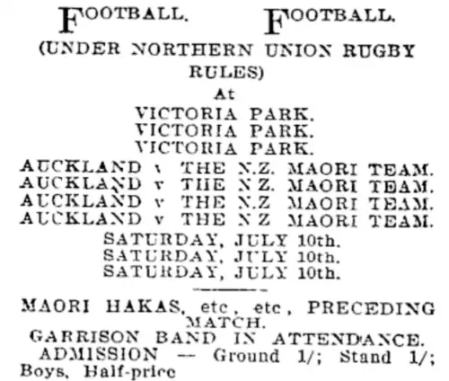- ^ "Maoris Play Pakehas". New Zealand Herald, Volume 80, Issue 24681. 6 September 1943. p. 5. Retrieved 20 July 2022.