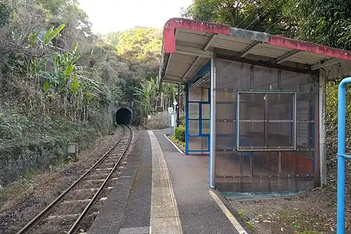 The station consists of a single side platform serving one track at grade. The station building has already been removed, leaving only the platform and waiting room.[2][3][4]