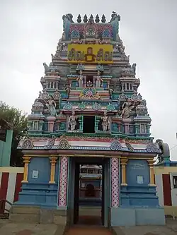 The temple faces east with a gopuram (gateway tower). The Vasantha mandapa (hall) is next to the prakaram (enclosure around the sanctum). To the right of the mandapa is the shrine of Shiva's consort Parvati as Abhivruddhi Nayaki. Her standing icon faces south and has four arms with a lotus, a staff in her upper arms; her lower arms in abhaya and varada mudras (hand gestures).[1] She is said to shower the devotees with fortune and progress.[1][2][3]