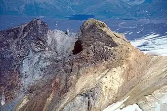 Alagogshak is a stratovolcano, located on the Alaska Peninsula, United States, in Katmai National Park and Preserve. It is the oldest of the volcanoes in the vicinity of the Valley of Ten Thousand Smokes. The volcano was recognized as a separate feature from Mount Martin in 1997. The Holocene Mount Martin stands partly on Alagogshak's deeply eroded edifice, about 3 kilometres (1.9 mi) northeast of the Alagogshak vent. Alagogshak was last active in Pleistocene time, and was active from about 680,000 years ago to about 43,000 years ago.[1][3] The remnant summit crater consists of hydrothermally altered rock. It is the only member of the Katmai volcanic group that is no longer active.[4]