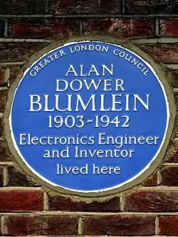- A blue plaque commemorating Blumlein was erected in 1977 by the Greater London Council at his former home in Ealing.[20]