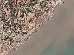 ![]() Ships beached at Alang for scrapping, satellite view, 17 March 2017 | |