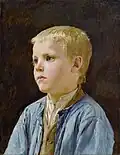 Anker moved to Paris, where he studied with Charles Gleyre and attended the École nationale supérieure des Beaux-Arts in 1855–60.[5] He installed a studio in the attic of his parents' house and participated regularly in exhibitions in Switzerland and in Paris.[1] Anker married Anna Rüfli in 1864, and they had six children together; the four children who did not die at an early age – Louise, Marie, Maurice and Cécile – appear in some of Anker's paintings. In 1866, he was awarded a gold medal at the Paris Salon for Schlafendes Mädchen im Walde (1865) und Schreibunterricht (1865); in 1878 he was made a knight of the Légion d'honneur.[5] In 1870–74 he was a member of the Grand Council of Bern,[5] where he advocated the construction of the Kunstmuseum Bern.