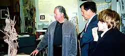 ![]() Paley (left) shows off his studio in 2006 to Dana Gioia and Louise Slaughter. | |