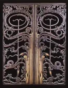 During his last year in the Philadelphia area, Paley began experimenting with metal again, specifically forging iron. He and Lechtzin pulled together a small workshop for forging in the garage of Lechtzin's home, and spent the summer of 1969 reading about forging and learning how to work with different tools.[5] Paley's big breakthrough was in 1973, when he was awarded a commission from the Smithsonian to design the portal gates for the Renwick Gallery in Washington, D.C.[10] In order to build the gates, Paley found a space to rent and filled it with machinery. He hired a past student, Richard Palmer, as a full-time assistant, and they spent a year creating the famous Portal Gates for the Renwick. After the Portal Gates, Paley's career in metalworking took off, with a focus in functional design: tables, lamps, and other usable forms of sculpture. Paley had created an array of decorative objects before the Renwick Gates, using his garage-shop. But after the gates were finished for the Renwick, Paley was left with a much larger work-space, in addition to a full-time assistant, supplies, and machinery. Paley already had another museum commission from the Hunter Museum of American Art in Tennessee for an 85-foot long ornamental [1].[11] Since then, Paley has done many private commissions for driveway, garden, and fence gates in addition to his numerous public commissions. Some of his gates to note are the Portal Gates for the New York State Senate Chamber of the State Capitol (1980); the Victoria and Albert Gates for the Victoria and Albert Museum[2] (1982); and the Animals Always Gateway Sculpture for the St. Louis Zoo (2006), currently the largest sculpture at any zoo in the U.S.[12][13]