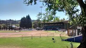 Albert Park is a baseball field that is now home to the San Rafael Pacifics. The Pacifics are a member of the Pecos League, an independent professional baseball league not affiliated with Major League Baseball. The park opened March 18, 1951, on land donated by businessman and local entrepreneur Jacob Albert, in 1937.[1][2] In the early 1950s, Yankee infielder and future legendary skipper Billy Martin would bring a bunch of the best semipro players from his side of the bay over the Albert Park for a weekend.[3] The field measurements are 325′ (99 m) on the left- and right-field lines and 370′ (113 m) in center field.[4][5][6][7][8]