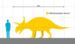Albertaceratops (meaning "Alberta horned face") is a genus of centrosaurine horned dinosaur from the middle Campanian-age Upper Cretaceous Oldman Formation of Alberta, Canada.[1]