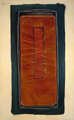 His marriage in 1989 reinvigorated his interest in depicting religion and its influence on marriage.[1]: 18 The work uses symbols to express the sometimes at-odds concepts of marriage, religion, memory, spirituality, and eroticism. Specifically, overlapping forms stood in for themes of marriage and memory, black lace invoked religion and eroticism, and binary forms recalled marriage, while gold linked to both marriage and religion.[1]: 18–19 [30]: 56–57