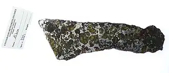 - ^ "Albin (pallasite) meteorite, Laramie Co., Wyoming, USA". mindat.org. Hudson Institute of Mineralogy. Retrieved July 31, 2018.