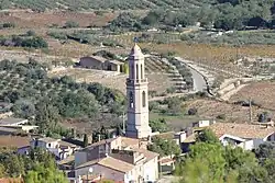 The hermitage of San Antonio of Padua is located on the outskirts of Albinyana. This eighteenth-century building has a rectangular floor plan and a gable roof. It features a barrel vault, external buttresses, and an attached bell tower, believed to be the old castle's defensive structure. It is on a small hill; the entire structure is painted white.