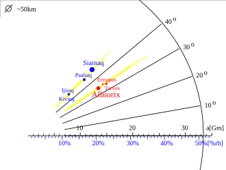 Albiorix /ˌælbiˈɒrɪks/ is a prograde irregular satellite of Saturn. It was discovered by Holman and colleagues in 2000, and given the temporary designation S/2000 S 11.[7][8][9]