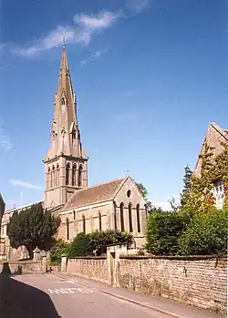 The village has two churches (Church of England and Methodist). The earliest parts of St Mary's Church, the Grade I listed[10] Church of England parish church, are 12th century. The church has a central tower and spire. The west front is an example of late 12th-century transitional architecture and the remainder of the church is mainly 13th century. The nave was restored under the direction of George Gilbert Scott in 1861–62 and the chancel under the direction of his pupil Thomas Graham Jackson in 1863–66. Jackson's chancel roof was painted by Ninian Comper in 1950. The stone is from Barnack. There are Ketton headstones in the churchyard; one by the lychgate depicts mason's tools and is by stonemason William Hibbins of Ketton who built Hibbins House, which is still standing. The spire is 144 feet (44 metres) high.[11] The Methodist chapel was refurbished in 2013 but dates back some 150 years.[12][13]