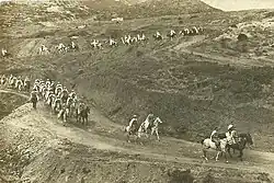 In 1910 Utrilla obtained his first service assignment, namely to Regimento de Caballería Dragones de Santiago,[25] at the time stationed in Barcelona.[26] The garrison duty did not last longer than a year; in 1911 he was posted to Cazadores de Taxdirt,[27] a combat unit deployed in Morocco. At the time the Spanish troops were involved in operations against Berber tribes around the outpost of Melilla. The fighting soon escalated into a so-called Kert Campaign, fought along the Melilla perimeter; during the crossing of the Kert river Utrilla commanded a machine-gun section.[28] In 1912 he was promoted from sub-lieutenant to lieutenant (teniente primero)[29] and with this rank in early 1913 he was transferred to the Cazadores de Alcántara regiment.[30] The same year he was moved from the line to the rear and assumed duties at Cuadro Eventual de Larache,[31] a replenishment centre of the unit.