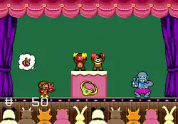 The player guides Alex through eleven stages by fighting and avoiding enemies and obstacles. Alex can jump, kick, crawl or punch enemies, causing them to explode into gold coins, called Baums. New items and vehicles are gained by playing Janken (rock paper scissors) in gambling houses, including the Sukopako Motorcycle, the pedicopter (a small pedal-powered helicopter), a pogo stick and wizard cane which allows Alex to float in the air for a few seconds. One hit from any enemy causes Alex to die instantly.