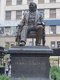| Horace Greeley Monument[22] | 1890 | Greeley Square (New York, New York) | Bronze sculpture on Quincy granite base | Sculpture: H. 7 ft.; Pedestal: H. 8 ft. |
