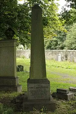 Duncan received steps in rank, to Lieutenant-General in 1846, then to full General in 1854.[4] He lived at Gattonside House, near Melrose, in the 1850s, and died there on 14 May 1859.[10][11][4] He is buried in Warriston Cemetery in north Edinburgh. The grave lies opposite Alexander Smith near the east gate.