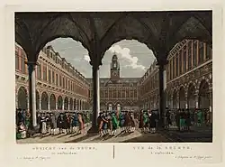 On 12 June the news of the failure of Neale, James, Fordyce and Down reached Scotland.[29] After the weekend a bank run began on its Edinburgh branch.[30] As this information became public within two weeks eight banks in London collapsed.[31][32] According to Paul Kosmetatos "lurid tales abounded in the press for a time of merchants cutting their throats, shooting or hanging themselves".[33] On 24 June 1772 his goods, stocks and country house were seized by The Crown; the whole City of London was in uproar when Fordyce was declared bankrupt.[34] Neale, James, Fordyce and Down, the largest buyer of Scottish bills of exchange, were forced to declare insolvency.[35] Also the Ayr Bank collapsed on 24 June.[36][37][38] The stoppage precipitated a crisis. Sir Richard Glyn and Sir Thomas Hallifax stopped payment temporarily, and a stoppage by Sir George Colebrooke came close.[39] On 25 July Fordyce was given seven weeks to appear for his creditors and come to an agreement.[40][41] Around 20 banks across Scotland and the Dutch Republic collapsed in the aftermath.