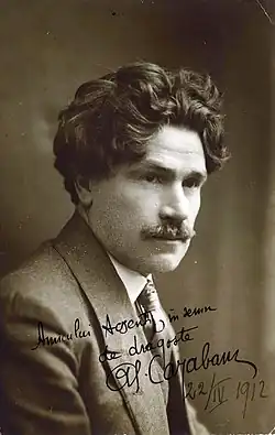 Born in Iași to François Cazaban, who was of French origin, he graduated from the city's National College in 1895, following which he entered an architecture school that he did not complete. He worked by turns as a proofreader at Românul, a rural schoolteacher, a draftsman, a veterinarian and a civil servant at the bridge and highway agency, before re-entering the newspaper business with the support of Alexandru Vlahuță and Barbu Ștefănescu Delavrancea. In 1898, he edited Bolta rece magazine at Iași, publishing humorous vignettes. His own publishing debut involved satirical sketches that appeared in Anton Bacalbașa's Moș Teacă.[1]