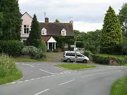 Many of the original houses that stand are half-timbered cottages, an old pub (once called the Wobbly Wheel Inn),[1] a small village school, bakery and even a small police house. None of these are still used for their original purpose and have been modernised and made into private residences though still revealing their old architecture.