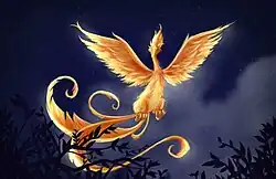 The alicanto was a legendary bird of the Atacama desert of Chile.[4][1] Legend says that the alicanto's wings shine at night with beautiful metallic colors, and their eyes emit strange lights.[4][5] The color of the wings may indicate the type of ore it eats, golden if from a gold mine and silvery if from a silver mine.[1][2][4][5] Some descriptions also portray the color of the wings as copper-green.[4] Also the cave-dwelling alicanto female will lay just two eggs, of gold or silver, depending on the ore it feeds on (lore of Santiago).[1]