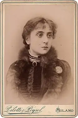 Alice Barbi was born in Modena, Duchy of Modena and Reggio on 1 June 1858.[1] She began studying music at a young age under her father Henry's guidance. She was a near-prodigy violinist,[2] debuting at the age of seven. After staying in Egypt she studied in Bologna at the Conservatorio Giovanni Battista Martini. She was trained in musical theory and studied multiple languages. She attended lectures by Carlo Verardi. She later dedicated herself to singing, studying with Luigi Zamboni and Alessandro Busi in Bologna and later with Luigi Vannuccini in Florence, where she had moved with the help of the Corsini family.