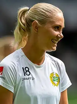 In 2020, Carlsson joined Hammarby Fotboll, where she become an integral part of the squad and chosen to become the club captain.[4] Alice lead her Hammarby side to get promoted up to the highest tier of the Swedish league pyramid, Damallsvenskan in her first year.[5] In 2023 she won The Swedish Double (Damallsvenskan and the Swedish Cup).[6][7] In 2024 Alice Carlsson rejected an generous offer from the Italian team Inter Milan to continue to play for Hammarby.[8][9]