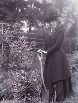 Eagle House near Bath in Somerset had become an important refuge for suffragettes who had been released from prison after hunger strikes. Mary Blathwayt's parents planted trees there between April 1909 and July 1911 to commemorate the achievements of suffragettes including Emmeline Pankhurst, Christabel Pankhurst, Annie Kenney, Charlotte Despard, Millicent Fawcett and Lady Lytton.[3] The trees were known as "Annie's Arboreatum" after Annie Kenney.[4][5] There was also a "Pankhurst Pond" within the grounds.[6]
