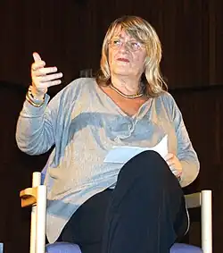 Alice Sophie Schwarzer[1] (born 3 December 1942) is a German journalist and prominent feminist. She is founder and publisher of the German feminist journal EMMA. Beginning in France, she became a forerunner of feminist positions against anti-abortion laws, for economic self-sufficiency for women, against pornography, prostitution, female genital mutilation, and for a position on women in Islam. She authored many books, including biographies of Romy Schneider, Marion Dönhoff, and herself.